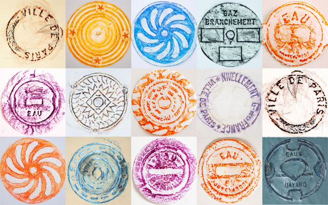 Während eines längeren Parisaufenthalts habe ich die Strukturen der Stadt in Form von Frottagen »porträtiert«: vom Gullydeckel für Gas und Wasser, über Fenster, Türen, Tore, Zaun- und Parkgitter, bis zu Métrostationen und Firmenschildern habe ich typische Formen festgehalten. Unverwechselbar: La ville de Paris.