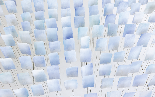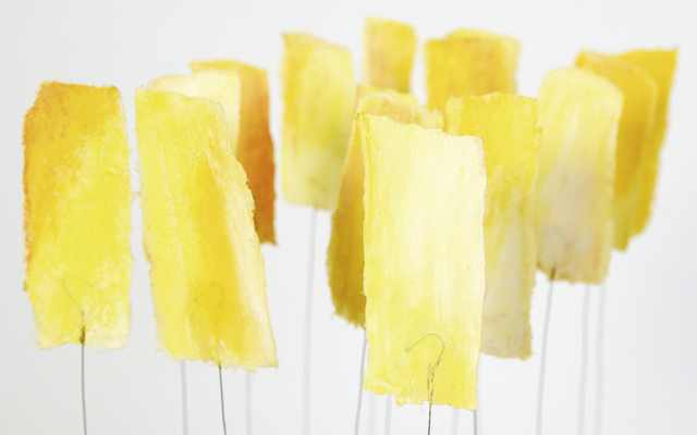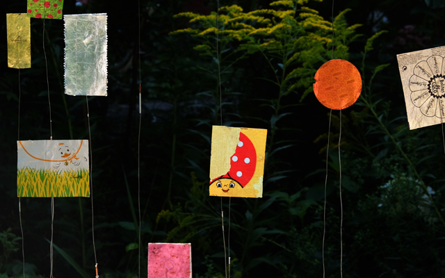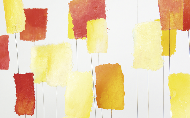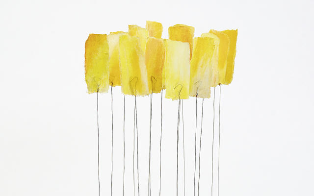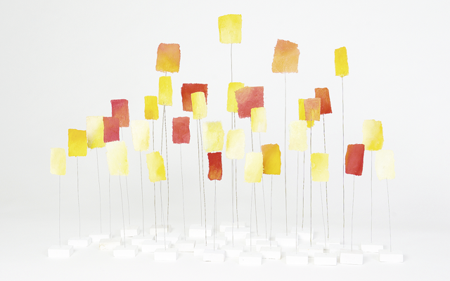 Japanpapier-Federstahl-Farbpigment … aus diesem Dreiklang forme ich kinetische Objekte. Manche versetzt schon der kleinste Lufthauch in sanfte Bewegung. Andere schwingen frei im Raum. Ich baue die Objekte als Solitäre, in Gruppen, in vielen Farben, und auch mit eingearbeiteten Motiven / Zitaten.