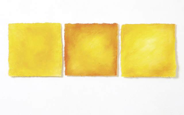 Meine Malerei lebt vom kraftvollen Farbpigment: Fast reiner Pigmentauftrag ist mit Kreide auf Japanpapier möglich. Also »baue« ich mir meine eigenen Leinwände aus vielen Lagen Japanpapier, auf denen die Intensität der Pastellkreide leuchtend zur Geltung kommt.